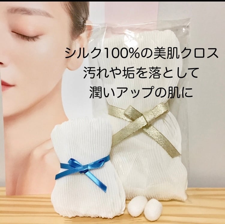 京都匠が織り上げたシルク100%のフェイス用 美肌クロス。 密な織りのレギュラータイプ(柔らかすぎず固すぎず) 2026 スプリングキャンペーン 10%オフでご提供!! 大切な方へのギフトにもおすすめです 約20×22cm お顔にボディにシルクでの肌磨きを^ ^ シルクアミノ酸でしっとりすべすべのお肌が期待できます。敏感肌や乾燥肌を改善して健やかな美肌づくりに♪ しっかりと織り上げているので、破れにくく 長く使って頂けます。 *・゜゚・*:.。..。.:*・ ・ .。.:*・゜゚・* 京都より、絹糸を操る職人歴30年の匠が手間を かけて丁寧に織り上げたシルク美肌クロス。 特殊な織りと加工により裏表に密な凹凸を出し 汚れ落ちや保湿効果を高めました。 凹凸は丸みをおびていますので、肌あたりは 優しくなっています。生地は厚みがあり 耐久性よく長く使って頂けます。 クロスをぬるま湯やお水で濡らし、 ボディやお顔に優しく滑らせてお使い下さい。 細かい凹凸がお肌に密着し、 老廃物を優しく簡単に取り除き、 シルク成分でお肌しっとり、 足りない潤いも補ってくれます。 汚れ落としと保湿が同時にできます。 シルクには美白作用もあるため、継続したケアに よりお肌に透明感が出てきて、腕や手肌などの シミ防止にも役立つと考えられます。 使用後はよくすすいで陰干しに。 汚れが気になる場合は、中性洗剤で押し洗いを。 黄変してきますが、これは紫外線を吸収すると 黄変するシルクの特徴によるものですので ご了承下さい。効果に変わりはありません。 石鹸やボディソープを使用した場合、 使用後はクロスの凹凸に石鹸カスが 残らないよう、良くすすいで開いて 干して下さい。(シルクは脂分を吸収する 特長があるため泡立ちは得られません。) シルクは優れた通気性や抗菌性もあるため 乾きも早く衛生的に使用できます。 乾いたまま、ボディ磨きにも。 血行を促し、むくみ取りや痩身に効果があるとされています。乾いた状態で使用される場合は、 濡らして乾いた後に風合いが変わってしまうため 洗濯は控えて下さい。 (洗濯する場合は、絹用中性洗剤をお使い下さい) ギフト用にはお渡し袋をおつけします。 備考欄に「ギフト用」と記載願います。 ・リボンの色もご指定可能(画像) ・お届け先のご指定も可能です ・配送は追跡可能便、または定形外140円で お選びください ※ シルクは、人間のお肌と同じ18種類のアミノ酸 (たんぱく質)の成分でできており、天然繊維の中で最も生体親和性が高いと言われます。 お肌に刺激が少ないため敏感肌の方にも安心して使える繊維です。 また、お肌の細胞を活性化する作用があるため、 お肌の土台を整え健やかで潤いのある肌が保てます。 シルクには、保湿効果、メラニンの生成を抑えることから美白効果もあり、美肌を求める方々から注目されています。