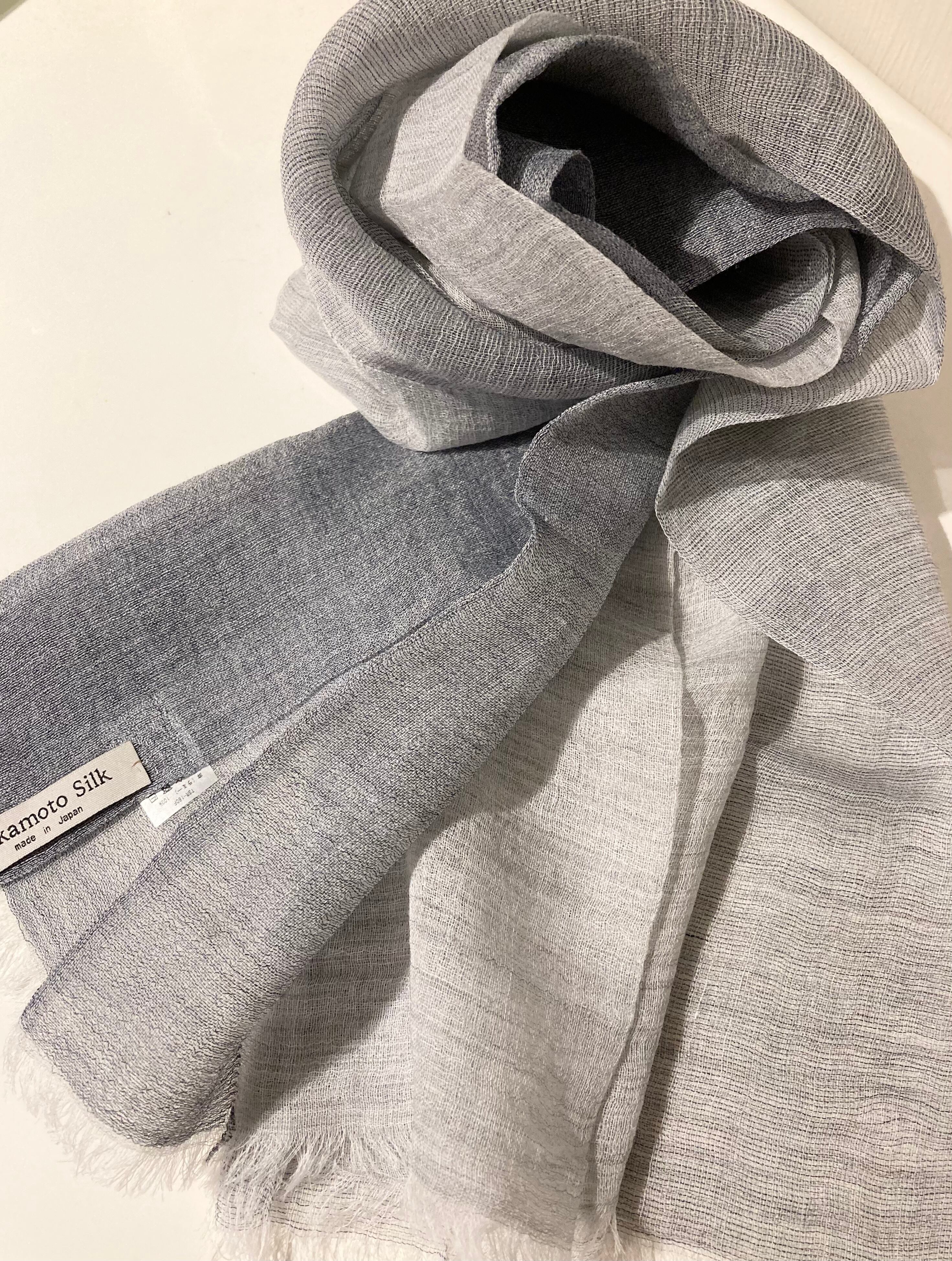 麻ストール #ライトグレー×ネイビー